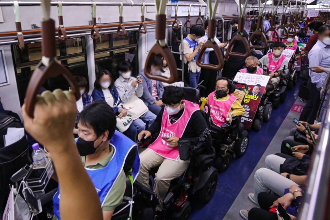 전장연 오전 7시30분부터 4호선 돌며 출근길 시위 경향신문